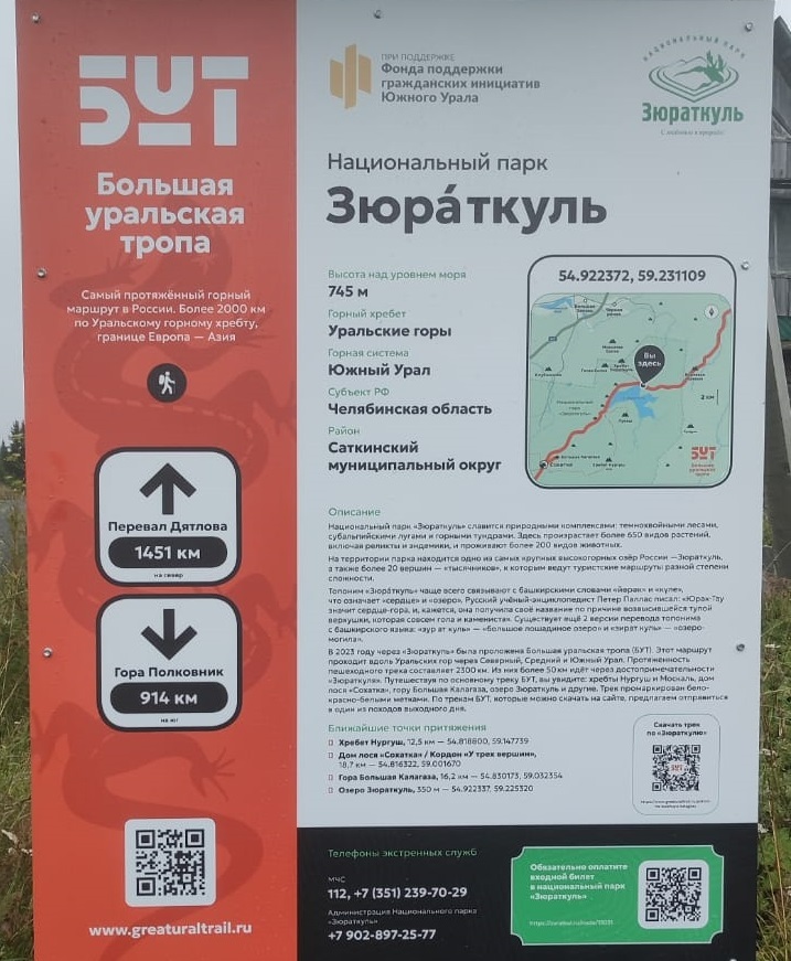 Этот информационный стенд — отличный старт или остановка для тех, кто хочет познакомиться с уникальной природой Южного Урала и пройти по треку Большой уральской тропы. Планируйте маршрут, загружайте трек и отправляйтесь навстречу новым приключениям!