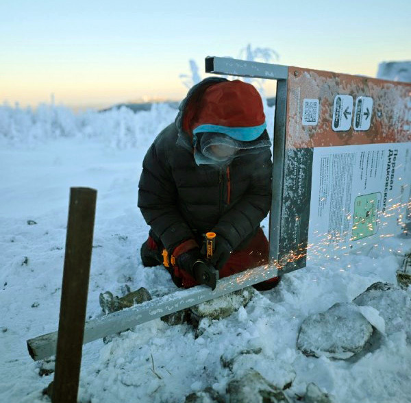 «При установке предыдущего стенда мы не учли направление преобладающего ветра. На сей раз сделали выводы. Новый стенд мы поставили ребром к ветру, смонтировали его ниже на 80 см, чем уменьшили парусность. На будущее для установки в таких сложных местах профиль трубы будем заливать бетоном. Это утяжелит конструкцию, но зато уже гарантированно не загнёт», — рассказал руководитель базы «Серебрянский Камень», руководителя дивизиона «Северный Урал» Александр Подольский.