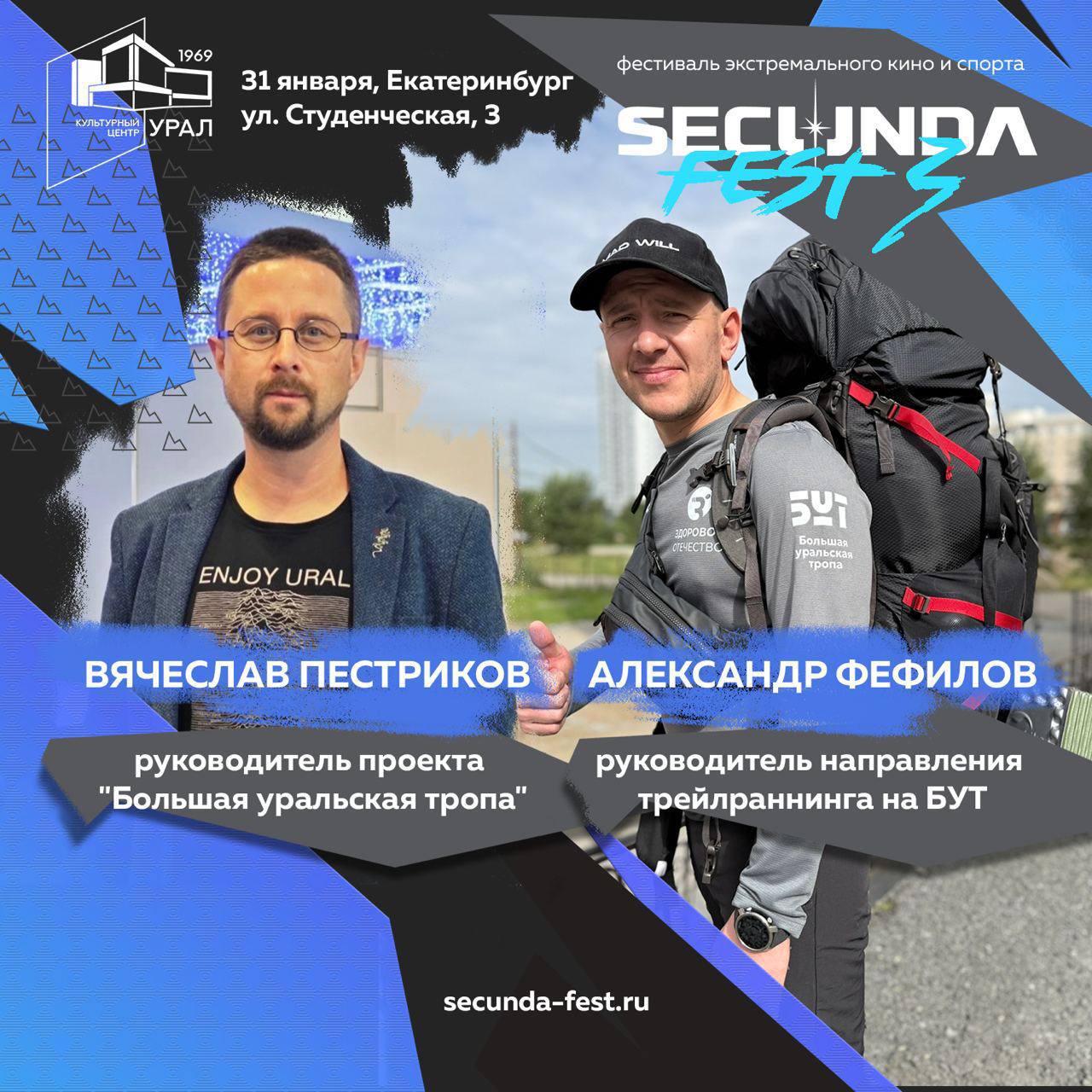 31 января в 10:00 в Екатеринбурге приглашаем на Фестиваль кино об экстремальном спорте SECUNDA FEST III. Команда Большой уральской тропы — хэдлайнеры первого дня!